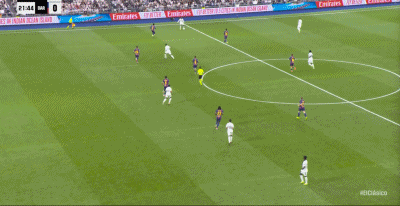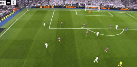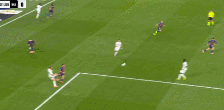第38分鐘,居萊爾后場被斷,拉什福德助攻費(fèi)爾明破門,巴薩1-1皇馬!