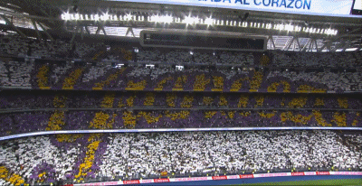 全場環(huán)形TIFO,鏡頭給到皇馬主場TIFO