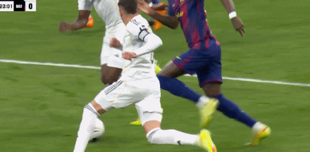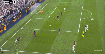 第43分鐘,米利唐頭球助攻,貝林厄姆推射空門得手,皇馬2-1巴薩!